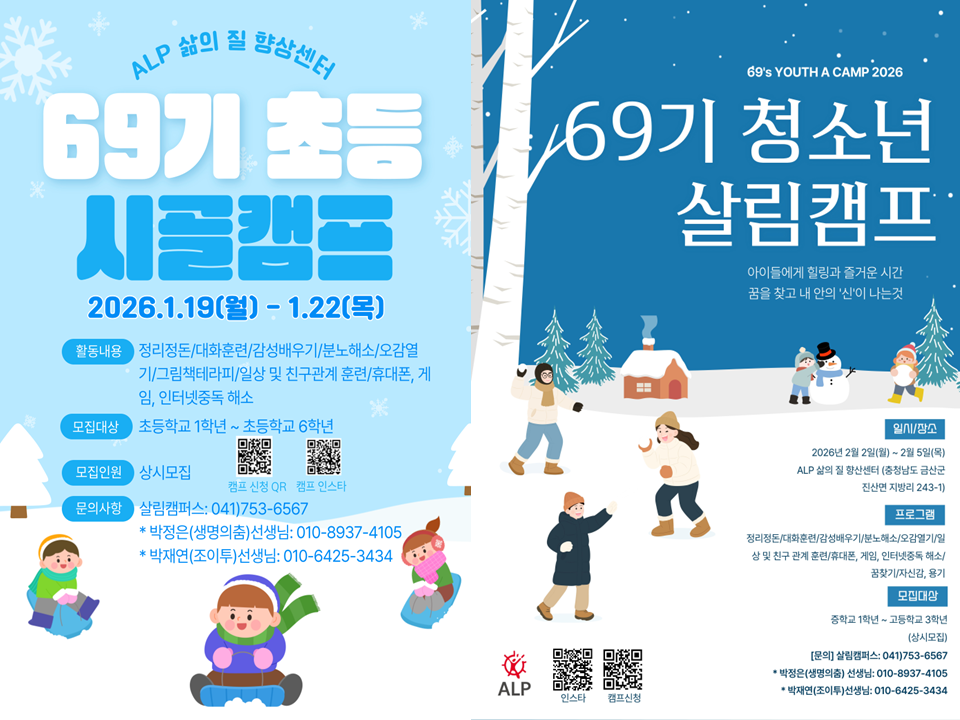 ALP 살림캠퍼스 69기 초등부 시골캠프 & 중고등부 살림캠프 “아이들의 마음과 미래가 자라는 겨울 캠프”